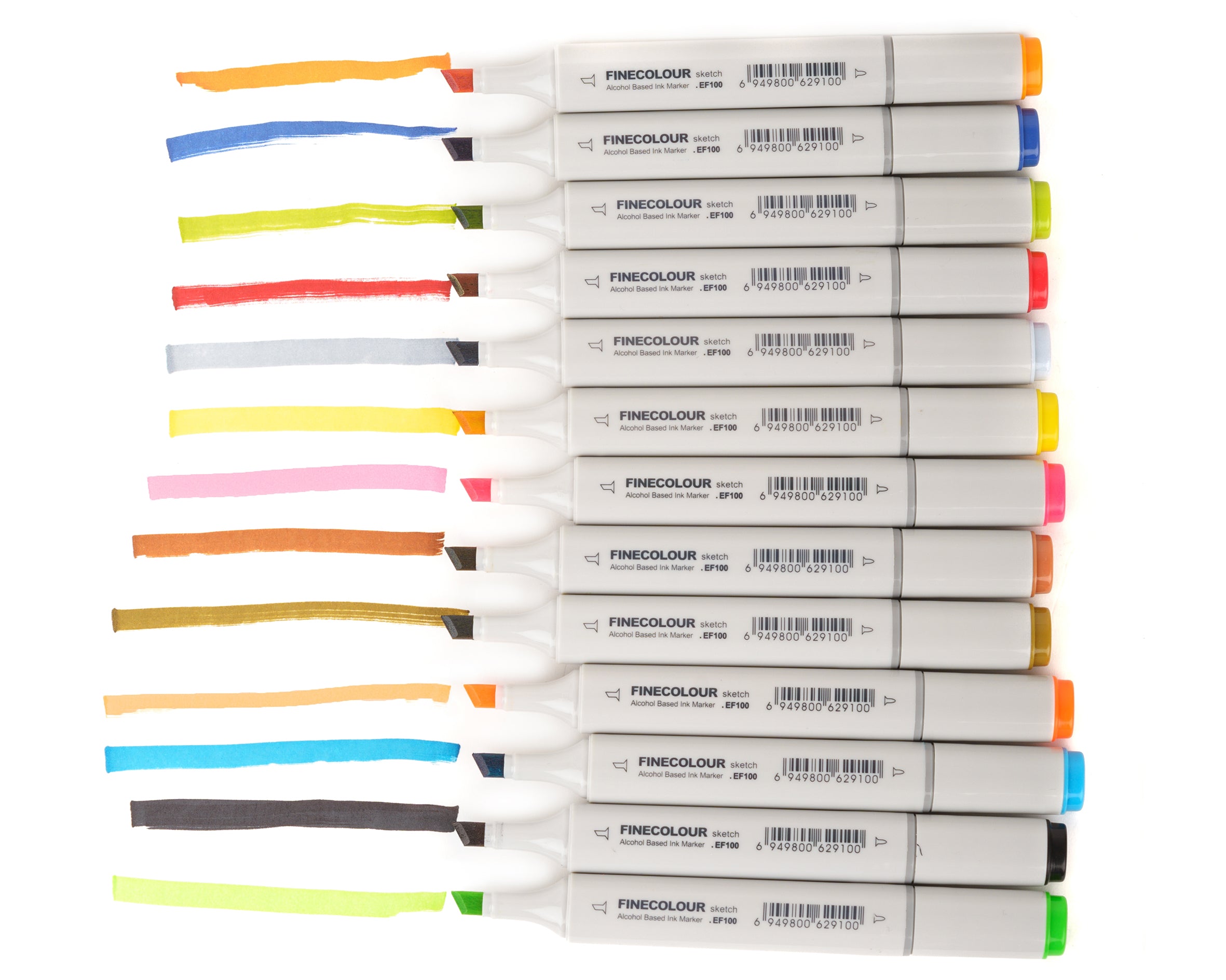 Varje penna är dubbelsidig med en fin spets för detaljarbete och en bred mejselspets för att snabbt fylla större ytor – ger maximal kontroll och flexibilitet i ditt arbete.