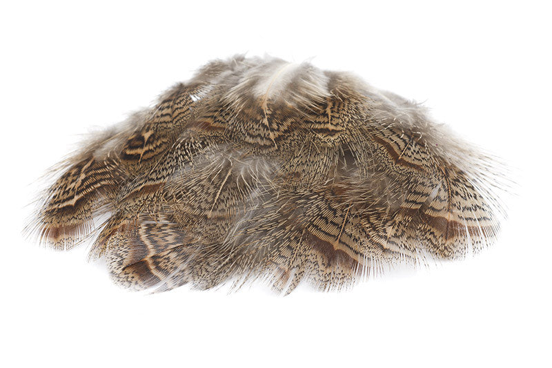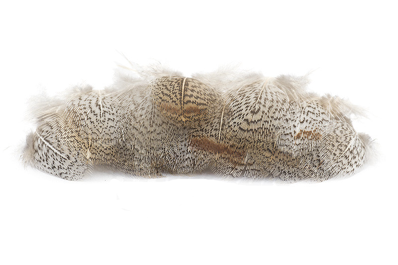 Fjädrarna kommer från hals, rygg och flank på grå rapphöna (även kallad ungersk rapphöna) och kännetecknas av sina vackert marmorerade mönster i mjuka grå och bruna toner. Den naturligt spräckliga teckningen ger ett mycket realistiskt utseende som perfekt imiterar ben, vingar och rörelser hos kläckande insekter.