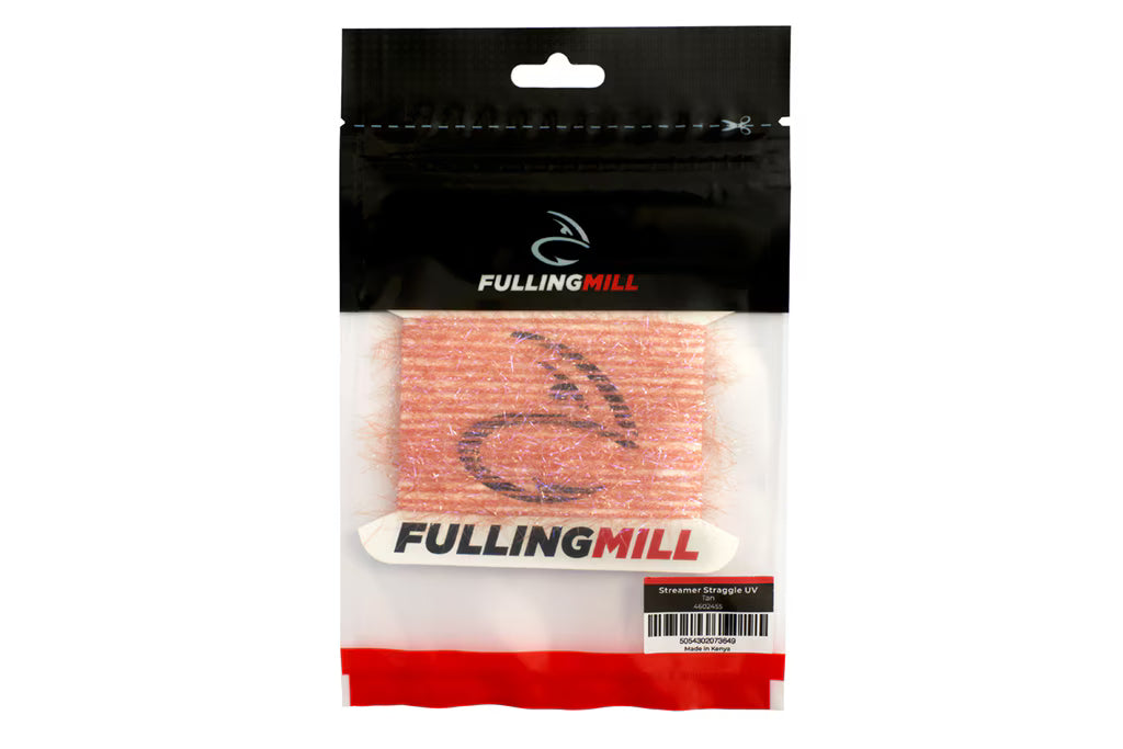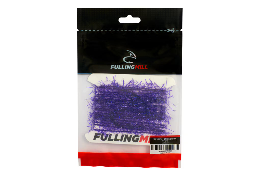 Streamer Straggle UV är ett garn med glesa, translucenta fibrer på en vävd kärna. Fibrerna rör sig lätt i vattnet och ger dina flugor ett livfullt och "straggly" uttryck. Diameter ca 12 mm.
